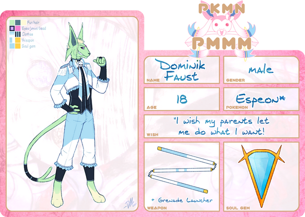 One of his more defining traits is his insecurity. Eos covers it up with statistics and smarts, but ever since the events of his contract his deep-rooted doubts and guilts have been eating at him. The need to cover for this only fuels his other flaws. He is very much aware that his condition puts him at a disadvantage, and struggling to live up to parental and personal expectations has taken its toll. Having his sister take over for him after his diagnosis was the final nail in the coffin, where he could see that despite everything he had done to prove himself and set himself apart, he was still replaceable. Hushed whispers from his parents, and their eventual 'gift' of a solitary apartment in Mitakihara have done nothing to help. Overly polite, overly nit-picky, needing to be right and if he isn't right he will collapse like a house of cards. Of course, having now to keep an eye on his soul gem can only cause further stress if he should start to spiral. Let's hope it doesn't come to that.