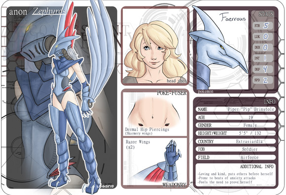 Backstory: Pip's mother became pregnant at a very young age, but the couple married and stayed together for the sake of the baby. Her older brother, Rowan was born, and the family managed to live a comfortable, middle-class life. Pip's mother stayed home to raise Rowan, and her father ran a small commercial plane business to transport people across Kanto. Rowan grew up learning the tools of his father's trade.