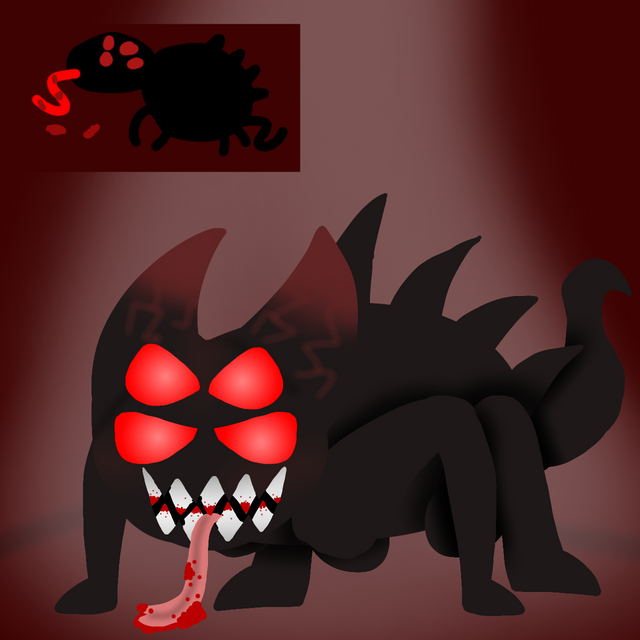 highly aggressive, feeds on live meat, can merge with similar creatures, if he marries with someone he will have a double muzzle,doesn't think brainy, if they reproduce, it is through severe pain and the children are left to their own devices, they are easy to break
