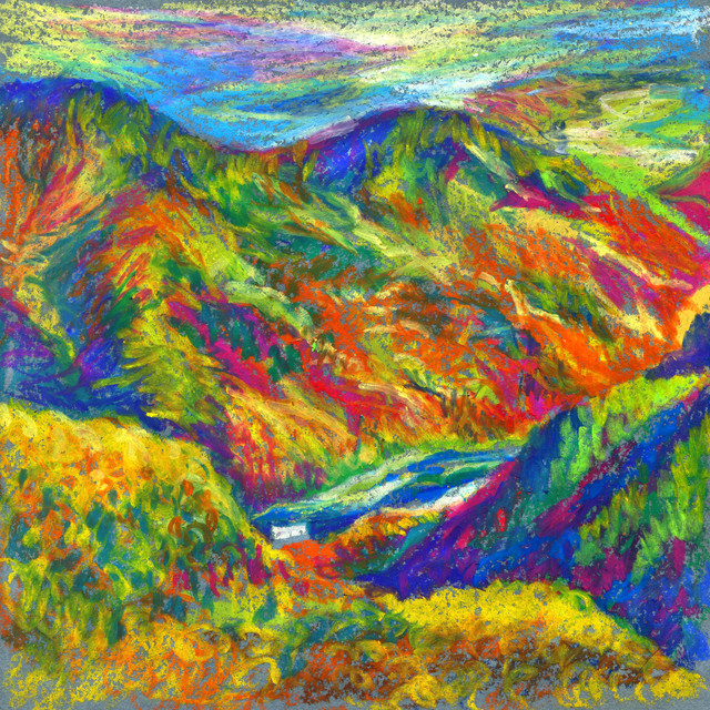 You art missed me so much, I am so happy to see that you submited something. I like so much the mountains, they are well painted, particulary because these details in them. Your describition about the water got something special: you describe what a great artist as you can throught their eyes, and even if you see everyday these waters, it seem so symbolic.It is really poetic.Or maybe it is the feeling to remember about my trip in Vancouver, I do not know. Anyway, the motion in the water is great, it add a lot of life in your creation. I also very like the fiery colors that gave to the sable. Keep painting these marvellous scene with your amazing skills.