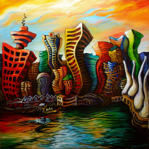 Very nice! I love how buildings are "dancing" with water and sky, great idea!