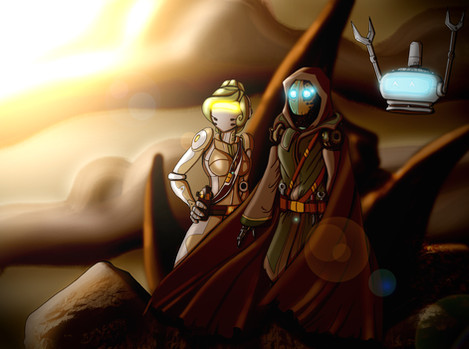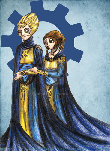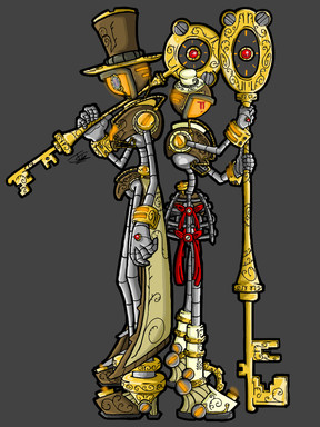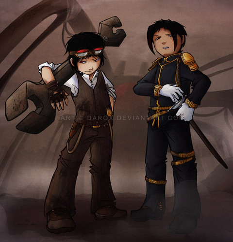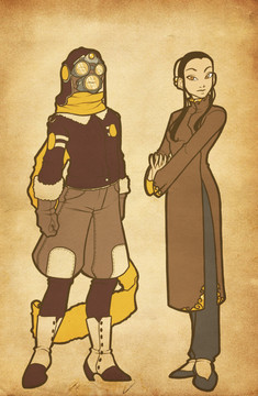 Steampunk versions of Razer and Aya.No other excuse other than I just wanted to draw Aya as an automaton. Razer originally had more steampunk-y details but he protested.