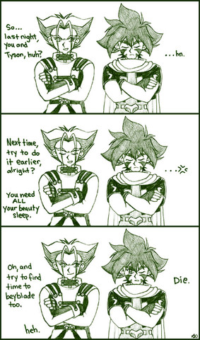 Lol, I could totally see Yusuke cracking short jokes at Hiei. And I love how Kurama just finds it lame and is trying to stay a peacekeeper. Simple but funny given the character's natures!