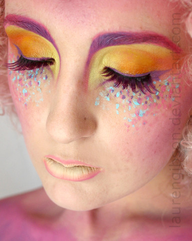Ahw this is so cute! I adore the colors and makeup, especially the speckles of color under the eyes~