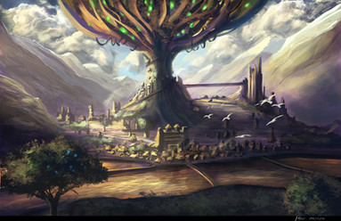 #colourful #conceptart #digitalpainting #drawing #green #landscape #palace #sacred #trees #environmentconcept #artworkdigital