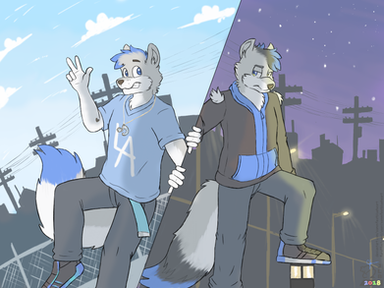 #anthro #commission #day #dayandnight #furry #fursona #night #nightandday #wolf