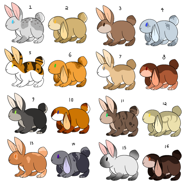 I made these bunnies over on ChickenSmoothie over a year ago, and despite my best efforts they never sold. So I decided to draw extra art of them and see if I can sell them here! ^^