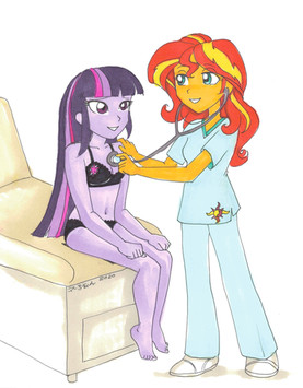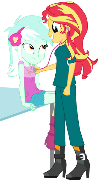 Here's my 2nd commission for Rathbane with his MLP OC Tranquil Paradise giving Sunset Shimmer a check up on the beach. This is done in my old style using MS Paint and Photoshop 7.0. Hope ya like it.Related content