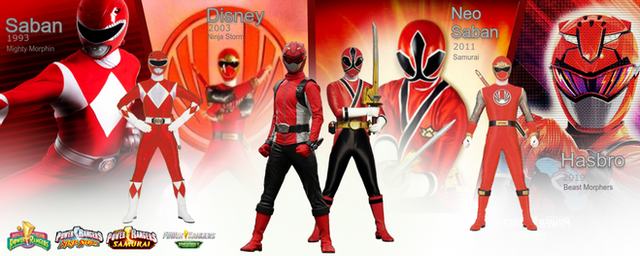 Digital trace.Red Jungle Fury Ranger, Red Mystic Ranger, Red SPD Ranger, Red Samurai Ranger and Ranger Red.