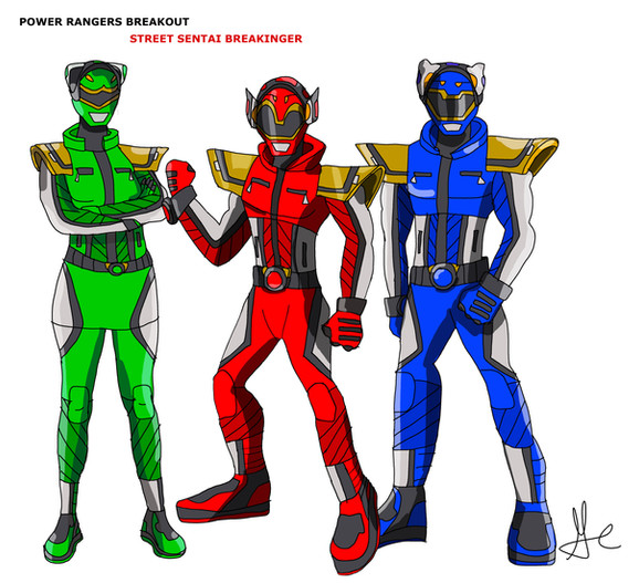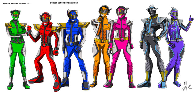 I wanted to do a slick design without armor and be based on athletic clothes. Their helmets are based on different types of helmets like construction, hockey, baseball, fire fighter, motorcycle and aquatic rescue. The poses are based on Boom Comics poses.Red Ranger - Fire Fighter helmet