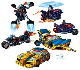 Hazard Ranger is the sixth Ranger of the Track Rangers. I had the idea for a Ranger with silver, orange and yellow color scheme and inspired by traffic safety an construction since 1999. The suit is inspired by the costumes in Beastie Boys' "Intergalactic" music video. The zords and weapons are inspired by Titanium Ranger, Operation Overddrive, and the sixth Toqger, the orange one ToQ 6gou. His weapon is the Hazard Drill which transformers into Blaster Sword Mode, which is like a light saber. His zords are the Dump Zord, Mixer Zord and Roller Zord, which become Hazard Megazord.Related content