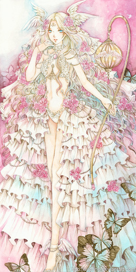 I love the details of the precious stones in the background and how you choose these colors for the character! Its a lot lovely n.n