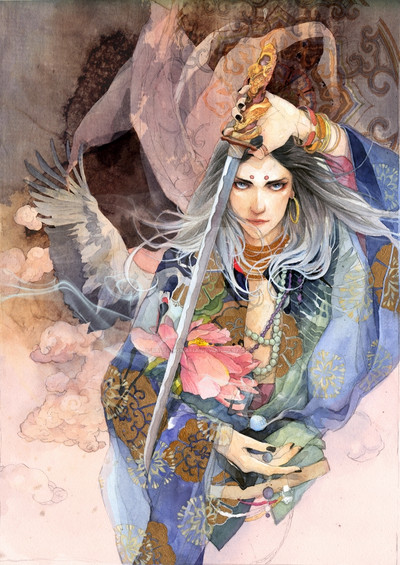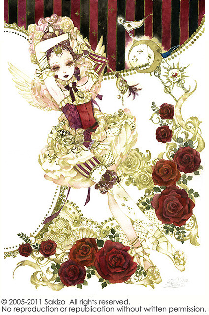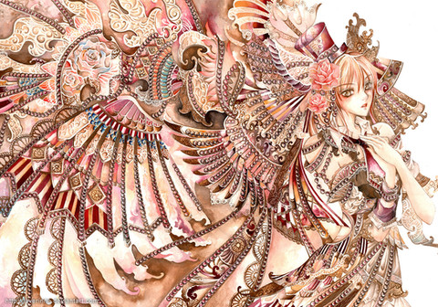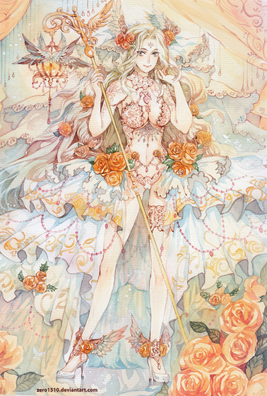 Quite elegant but sometimes so much intrincate designs make the character dissapear behind the fabric or feathers. Still, I have to say you are quite good doing roses.
