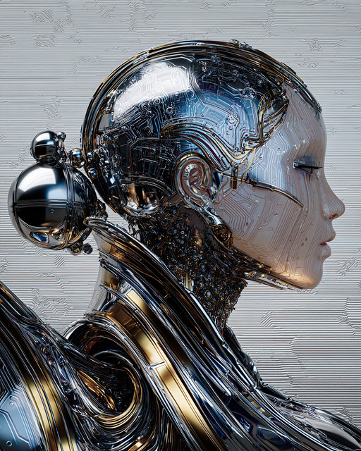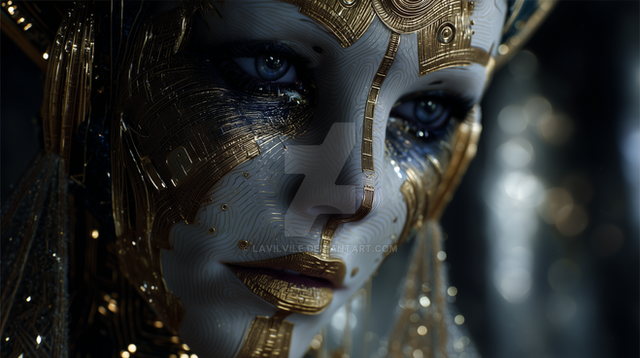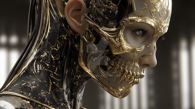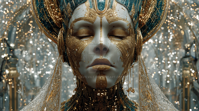 #digitalart #portrait #beauty #scifi #cyberpunk #cyborg #ai #android #circuitry #goddess #gold #halo #posthuman #shell #spiritualmachine #synthetic #transhumanism #transparency #godshell #sacreddesign #futurecult #elegantai #divinearchitecture #technomyth #cyberdivine #femmecyber