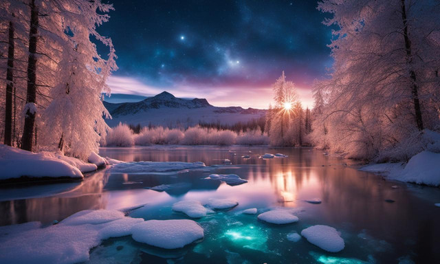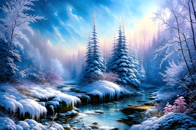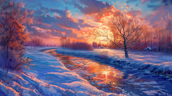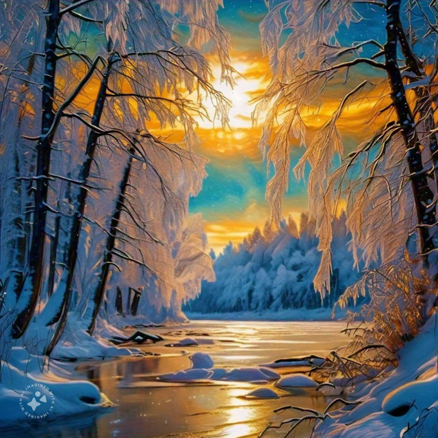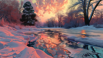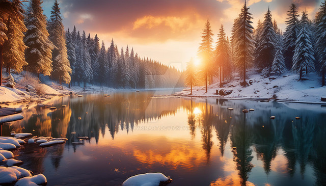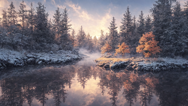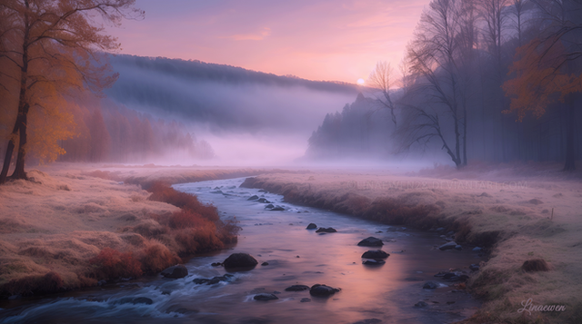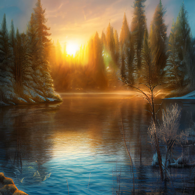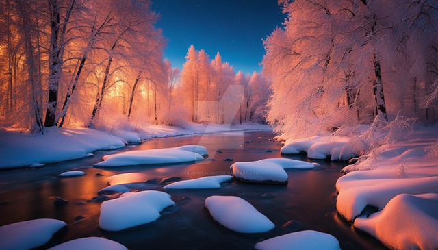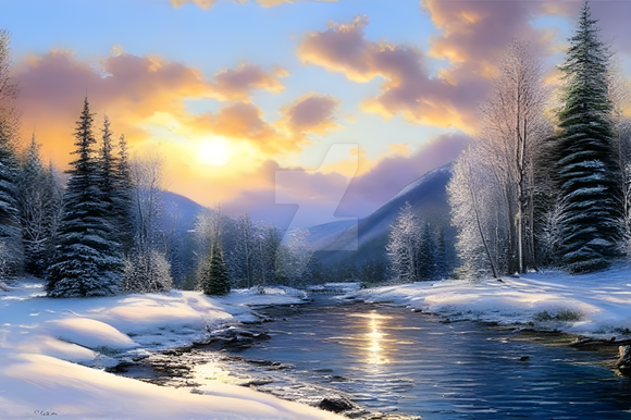 #ai #dawn #digitallandscape #digitalpainting #fantasy #fantasylandscape #landscape #river #environmentconcept #aiart #stablediffusion #snowylandscape #treeslandscape #winterlandscape