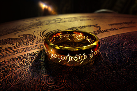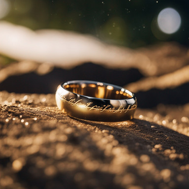 The one ring to rule them all, at the bottom of Mt. Doom, Black Speech Elvish inscriptions fading to darkness, awaits another era.SDXL + Photoshop