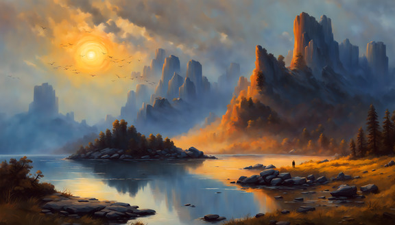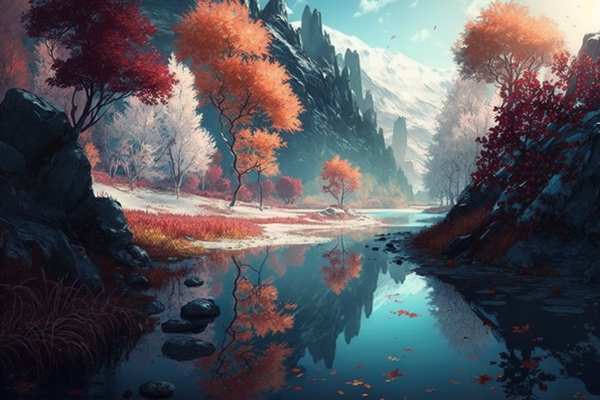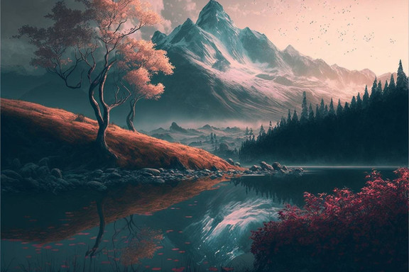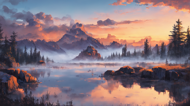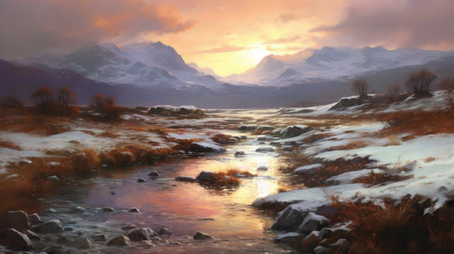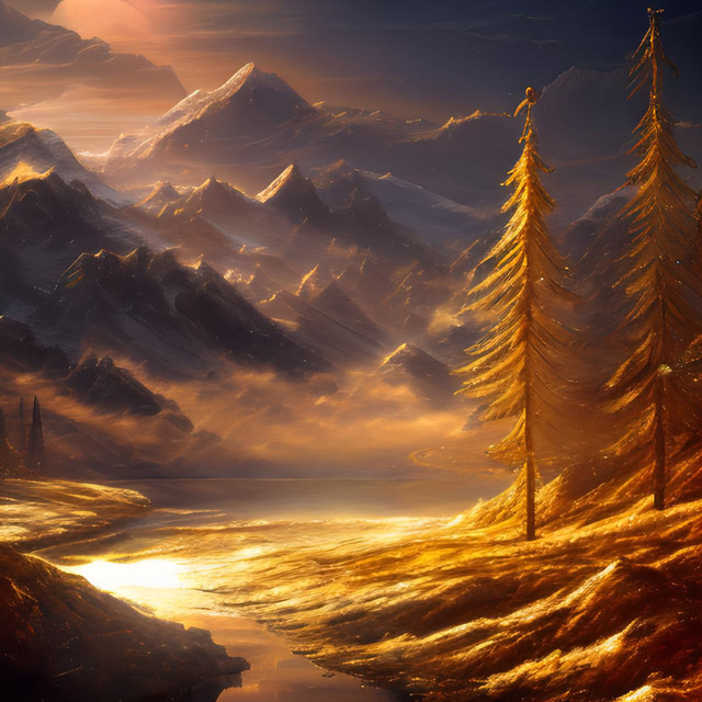 #ai #digitallandscape #digitalpainting #fantasy #fantasylandscape #lake #landscape #mountains #sunset #environmentconcept #aiart #stablediffusion #treeslandscape #winterlandscape