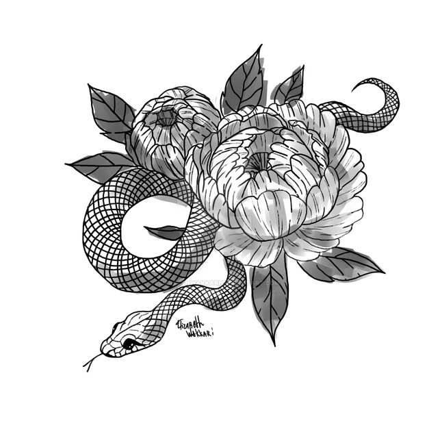 #tattoo #snake #floral #plants #traditionalart #blackandwhite #illustration #sketch #tattoodesign #tattoos #tattooinspired