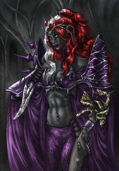 By popular demand, I have drawn my first drow picture in a loooooooooong time. I've been posting some of my older drow pictures from past DnD campaigns, which are well received, and whenever I check my gallery stats, it's always my drow art that is the most favorited, so I figured what the heck, I might as well do an all-new piece and see how it turns out.This is an original character not from any of my campaigns, though now that I've drawn her, I think I'll have to work her into a future storyline.