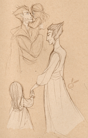 Continuing with my own unauthorized Fanart100 of R/Hr based on these prompts: [link]My prompt for "Parents". Now, I'm sure there are folks who will be dissapointed that I didn't draw Ma and Pa Hermione and Ron, but I have this weird thing about drawing future-tense pics that star new characters..esp since I want to keep this R_Hr100 as cannon as possible