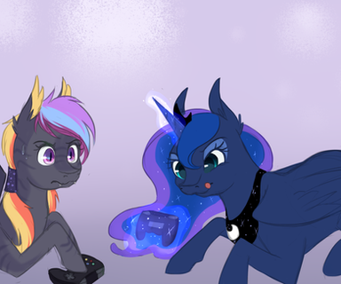 Commission for a private client!! ^^Luna builds her PC with a bulky GPU, while Twilight watches anxiously
