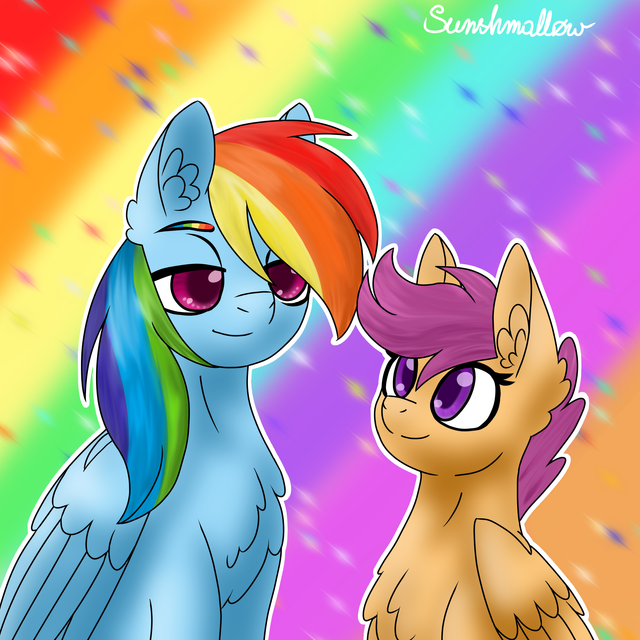 Decided to draw something for myself! It's been awhile since I took the time to do that, and I gotta say, it feels really good!RD and Scootaloo's sister relationship has always been something I've loved. It's a good reminder that even if your biological family fails to lift you up, your chosen family can, and is just as valid!