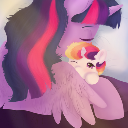 Aaaww, Twilight certainly looks like a mom, and Flurry looking so cute with her sleepy eyes. Nice work on this one! ^^