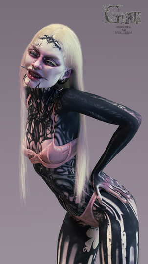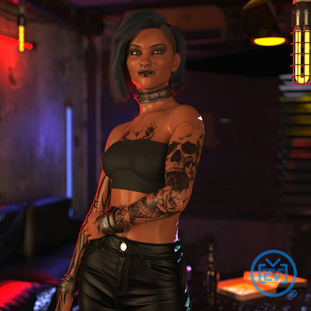 #gothic #render #tattoo #makeup #3d #daz3d #dazstudio #facepaint #g9 #heavymakeup #leather #metal #genesis9 #dazstudioiray
