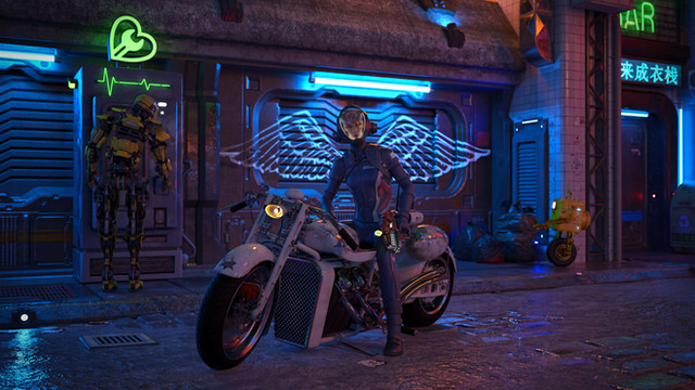 #cyberpunk #neon #scifi #characterdesign #3d #bike #daz3d #dazstudio #helmet #hoverbike #oc #originalcharacter #rabbit #render #original_character #irayrender #dazstudioiray