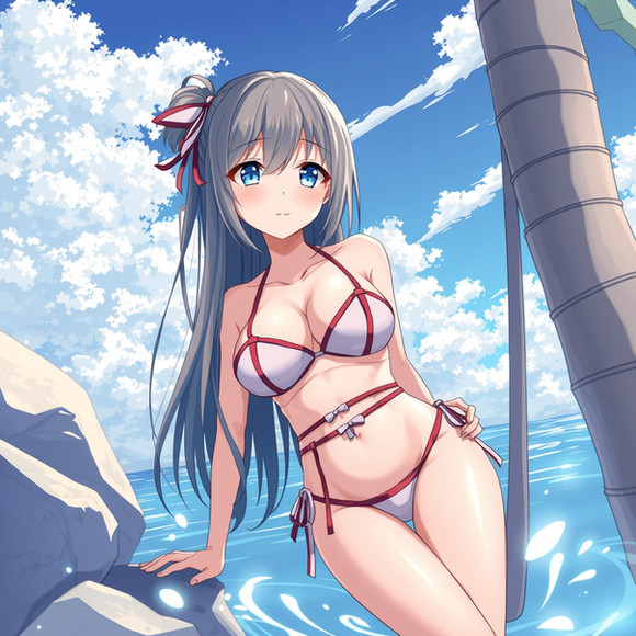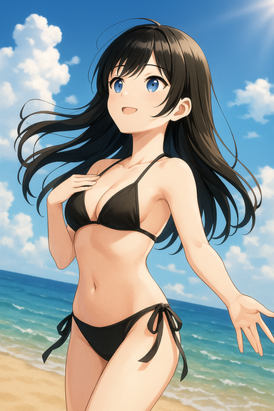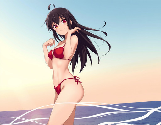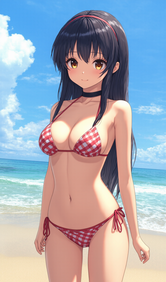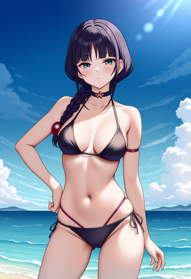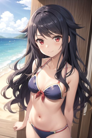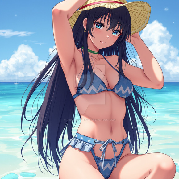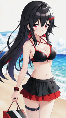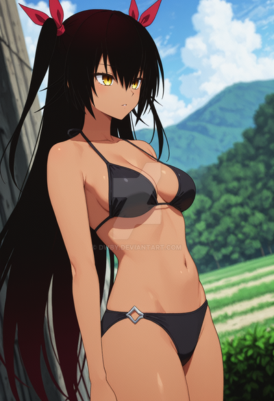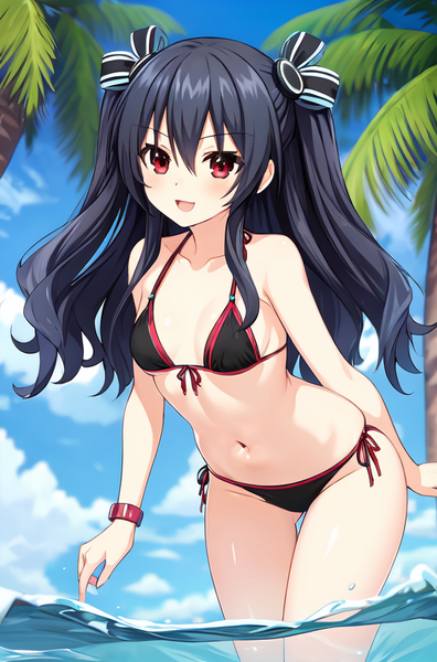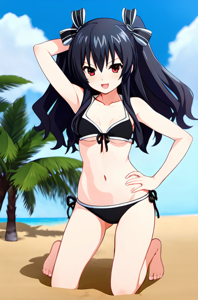 #animegirl #beach #videogamefanart #bikini #blackhairedgirl #redeyes #swimsuit #uni #hyperdimension_neptunia #black_sister #uni_neptunia #uni_blacksister #neptunia_series