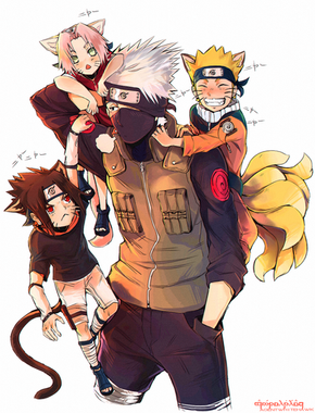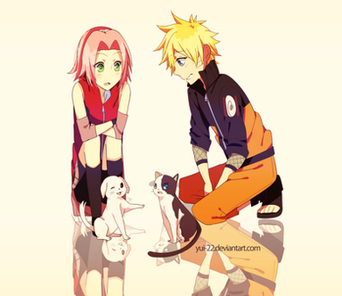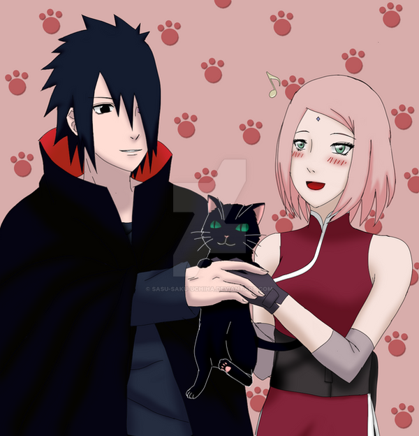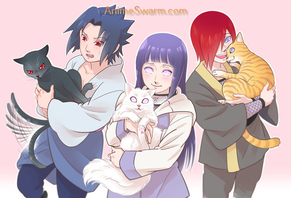 Lol this is funny and Sasuke is trying to stay serious but he has a small smile in his face and...who the hell took the photo?A cat??? lol looks like the brown cat on the left side is taking a selfie! well I'm crazyΒ
