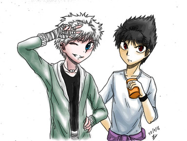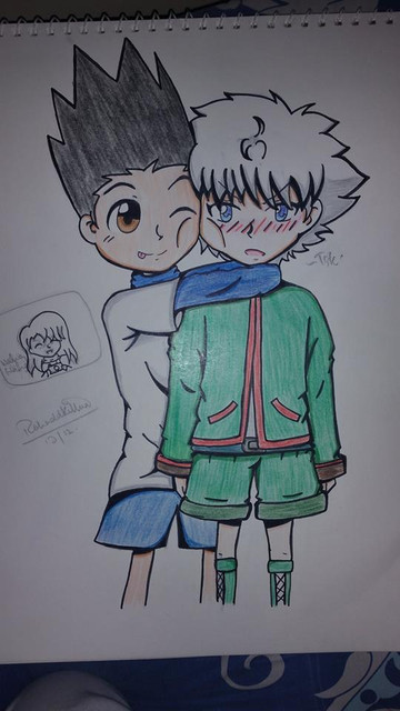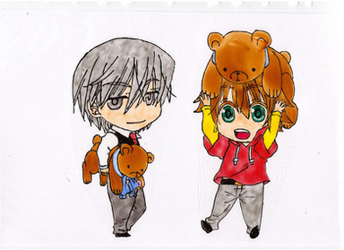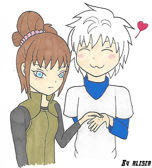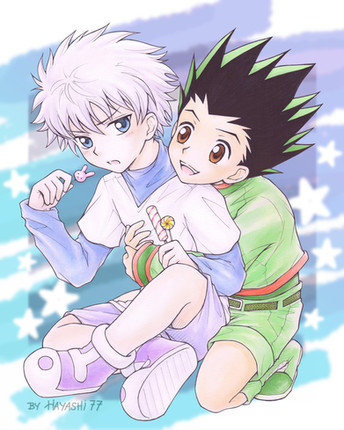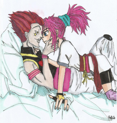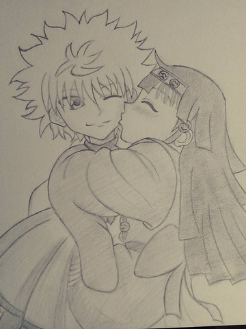 This is my HxH oc Sheori with KilluaA kiss that is wanted but not recieved... due to a stuffed dog that just so happens to be in the way XD (how convenient)