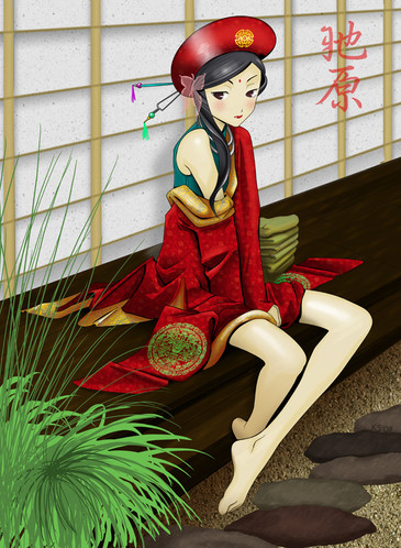 She's got a really cool outfit, and that hat is awesome too. The flowers and water fading into the background works nice with the angle of the piece too. Thanks for sharing it.