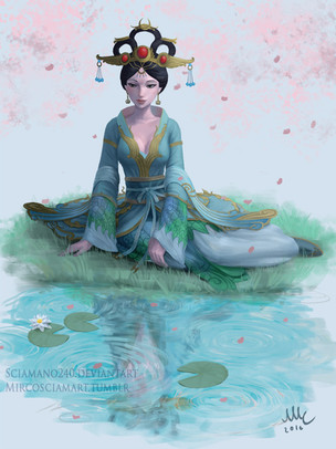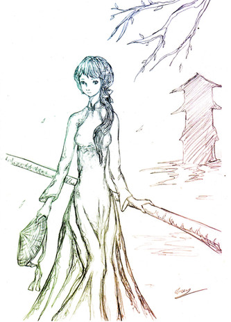 When I was younger I decided that one day I would visit all of Asia. Vietnam was brought to my attention by a friend and I started looking up pictures. The landscapes were particularly beautiful. I drew this because I really liked the dresses that's worn there. I decided to put her in the water because I thought it would look nice with parts of the outfit trailing behind with lotus around her. I think once I start traveling Asia Vietnam will be one of the first places I go.Related content