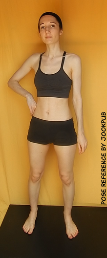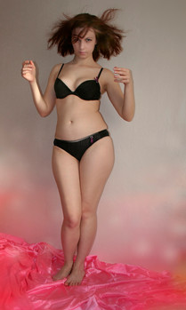 Great pose by the model, and very effective use of light and shadow and the plain white background to highlight her and thus draw the viewer's attention her as the focus of his/her attention.