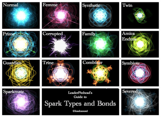 Gradually though, she had discovered that there was nothing to fear and had drawn comfort from the sparks that orbited around her. She had quickly figured out which orb of swirling colors represented the mechs she had been bound to—Sunstreaker’s and Sideswipe’s clung closest to each other, tiny and more colorful in comparison to the majority of the others; fiery orange strands licked Skywarp’s spark, which drifted farthest away from her; two little baby green orbs danced as close as they could to the barrier that separated them from her, and Victoria had known immediately that hyperactive one was Recall while the smaller rose-tinted one was Topaz, occasionally bonking against her brother to gain his attention. Bluestreak’s shone the brightest, and the green strands that whirled around it always crept along the barrier as if searching for the smallest opening to reconnect with her.