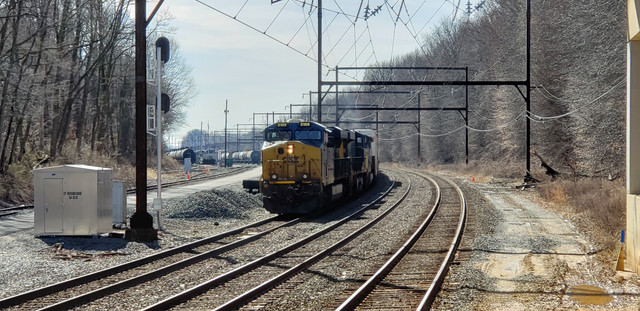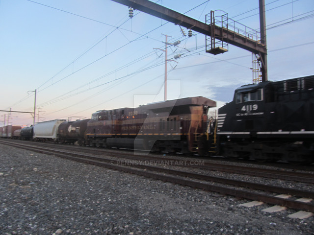Locomotives are an ex-Conrail C40-8W and a Union Pacific SD70M.