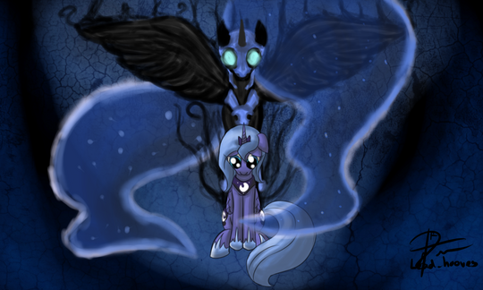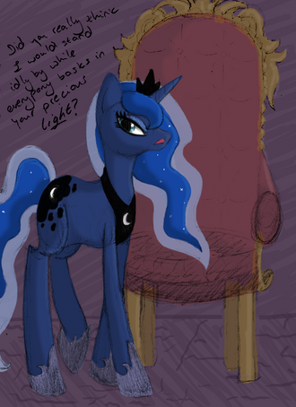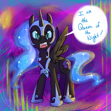 Nah it's not the mane shape. I actually enjoy drawing the mane shape. It's the coloring part. It's hard to color translucent flowing night sky hair >.>