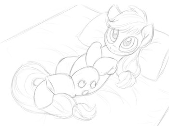 Agh, this is SO incredibly cute as I said; the body language is perfect and I just love her expression (poor Applejack). I really hope you might decide to do more with this at some point, but even as a sketch it's great!