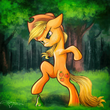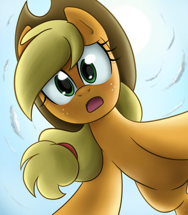 Applejack finds herself cornered by thousands of strange bipeds in the bizarre world she'd been thrust into, most of whom are wearing likenesses of herself and her friends!