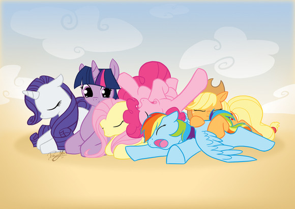 Rarity way of sleeping looks odd from this perspective. Twilight's exposed belly look adorable thought, so is Dash's.