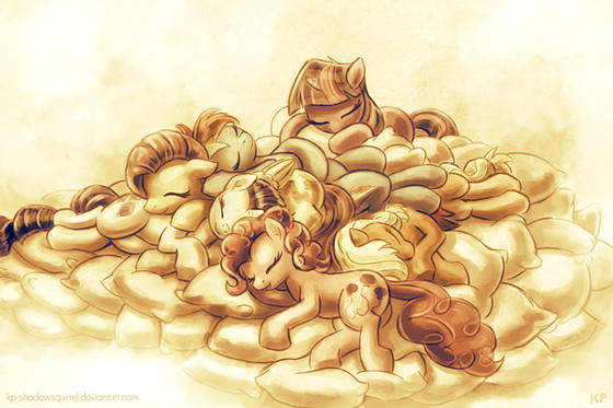 Haha, I love how Rainbow Dash sleeps but she better hope she doesn't catch flies. And poor Pinkamena...she looks so vulnerable and scared.