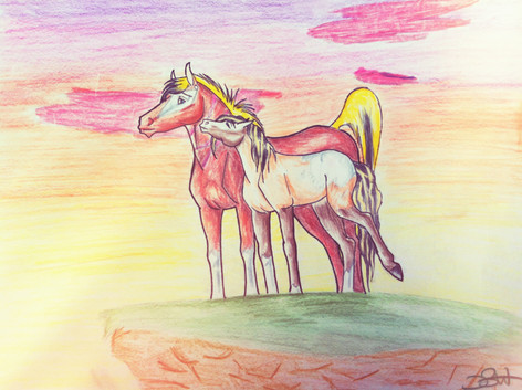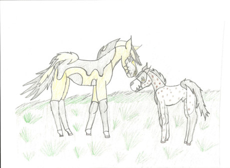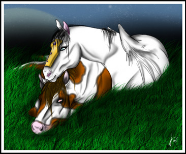 This is a giftart for ~Hate2BUmun . It's probably a scene where Kira comforts Aubrey after watching over the herd almost all night. As you can see he is tired and Kira has a positive attitudePS: LOL stupid me, I disabled the comments