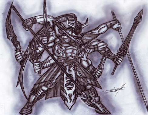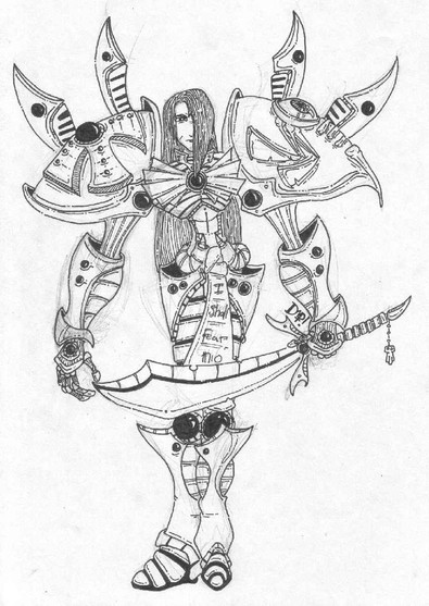 This is a remake and redesign of a character concept I had drawn back when I was 12, back when I had a whole lot more imagination and originality.The Guardian is a living statue constructed by the Dark Angels to keep any intruders from entering the Dark Fortress in the Sky. It is the living darkness, in the form of tentacles, that breathe life into the statue and possesses it. The Statue is about 10 meters high.