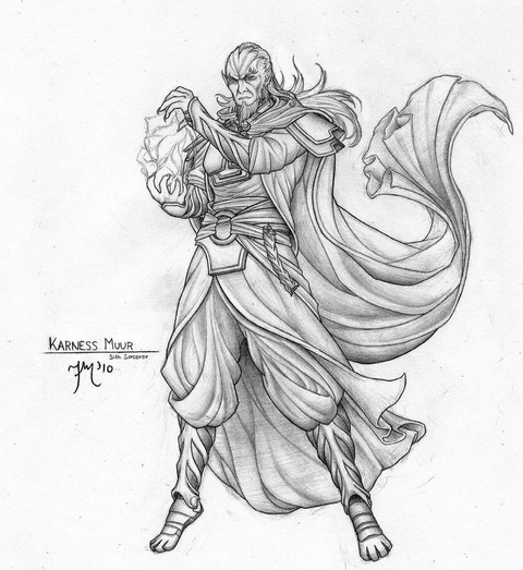 The living Marka Ragnos, based on his appearance from "Star Wars: Tales of the Jedi: Dark Lords of the Sith". Living at around 5000 BBY, he was the total paragon of what it meant to be a Sith. Feared, obeyed, and admired among the Sith, he was considered to have been one of the greatest Dark Lords of the Sith in all history, possessing immense power both in combat and through the Force. His scepter, which he crafted through Sith Alchemy, had the power to drain residual Force energy and use it to empower his followers. It was also used as a sheath to house his Sith sword, powered by his immense powers of the Dark Side. When he died--of old age--, his spirit would continue to haunt the galaxy, with the Sith Dynasty requiring his guidance and council, time and time again.This was pretty fun considering how very vaguely detailed he was in his single appearance in the comics, at least with this appearance, and having to be responsible to fill in those details. Again, this is meant to be his appearance when he was still alive, before he apparently grew whiskers, and had his nose shrunk. Rest assured, I will still be doing his more popular, rotting shade appearance, but much much later.