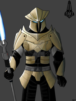Demetor's life-support systems are the result of a training duel with his master, Dominus, in which he lost his entire face to the blade of the lightsaber. Blind, he uses the Force to see. Like all members of the High Council, Demetor is equipped with a black-bladed lightsaber, or "darksaber", it's color, symbolic of their aim to vanquish all light. Boganites are taught to disdain from using the crimson blade that distinguished their "flawed" Sith predecessors.