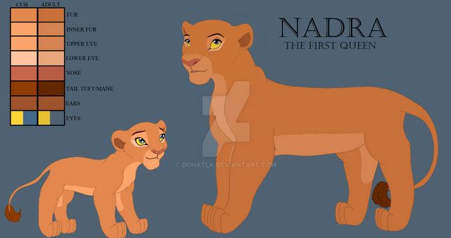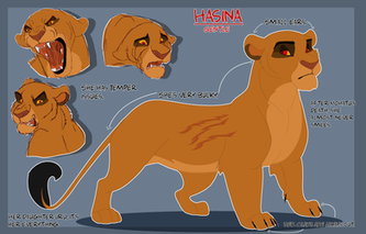The mother of Mohatu and the Selfish Lion. Forced into betrothal with Jamal at a young age due to unforeseen circumstances, Hasina was forced to mature quickly. She was only a teenager when she gave birth to Mohatu and his brother. As if the Great Kings wanted to add on to her problems, she had to deal with Jamal putting her father's kingdom in jeopardy. The once cheerful lioness slowly became overcome with bitterness, which forms her character as an adult. More details about Hasina will be released some other time.