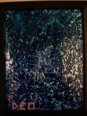 Good guess it is foil and the light in the center is the flash but just think how this painting would look with a dedicated light source on the full picture?Β Sure you wouldnt have the focus point in the center but the darker veins would give more meaning to the pic with a ribbon of shine across the center. But if you really wanted the light on the center you could get a light source that could be aim there. Anyways Glad you enjoyed it, Makes my Day an Thanks for replying