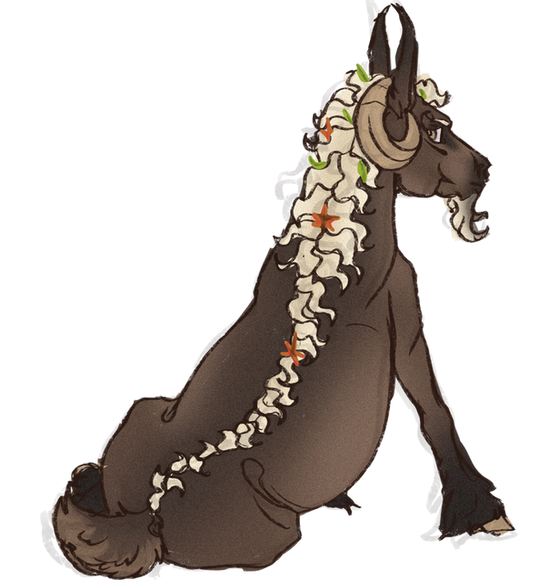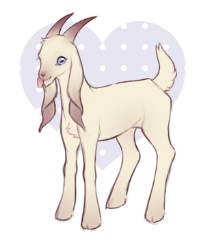 goat character!!! he cute!! he escaped from a barnyard n lives in nature now,, he kinda just sits around n eats flowers.. he's got a split in his ear where his tag used to bemeanwhile his goat boyfriend is a demon goat,, who can talk in demon goat language.. But my goat can't do that he just sorta makes goat noises