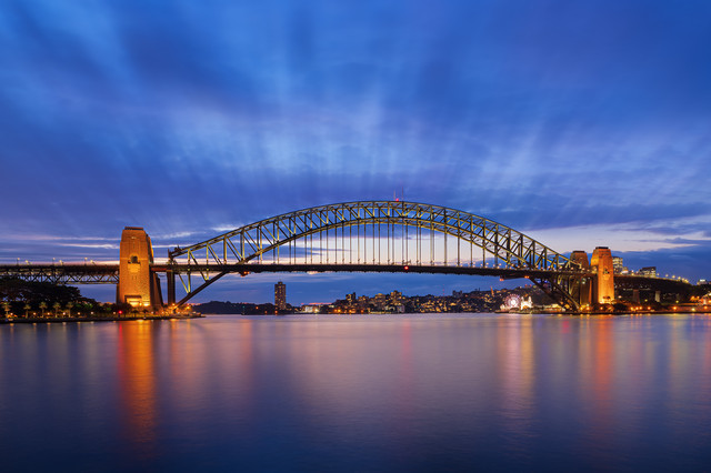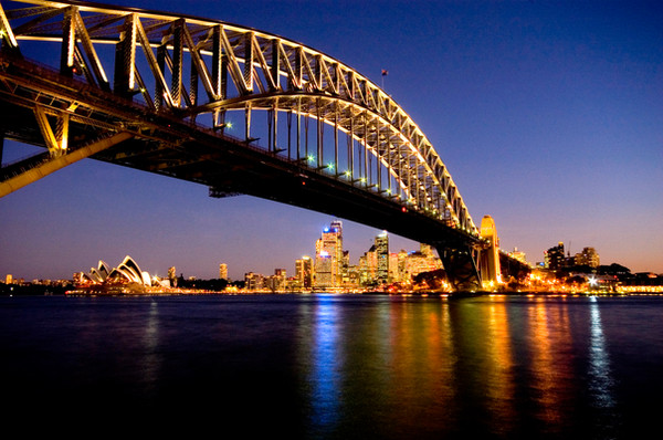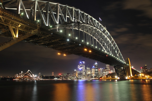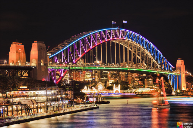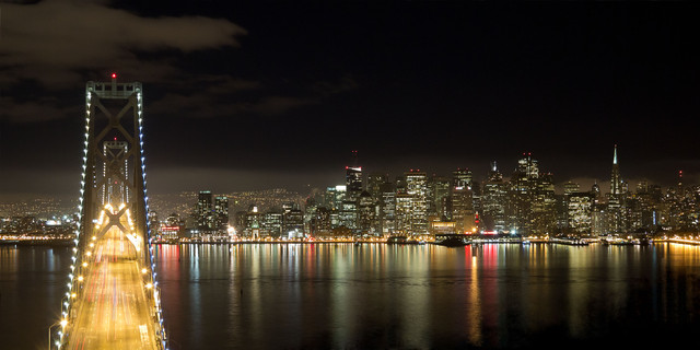 Such wonderful details to the bridge. The lights from the buildings look intense!